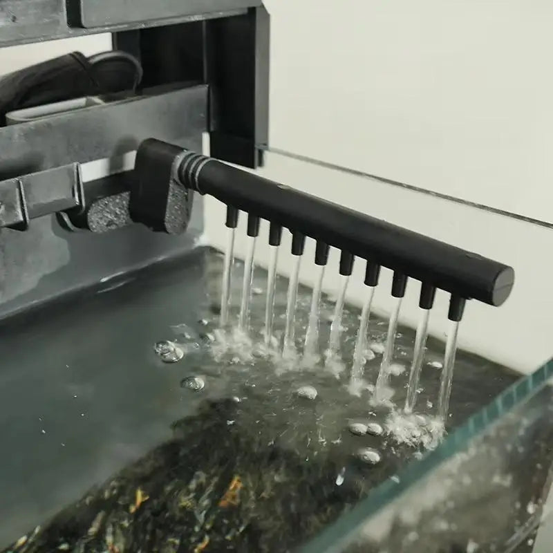 - Duck mouth nozzle minimizes splashing and helps maintain a tranquil aquarium environment.