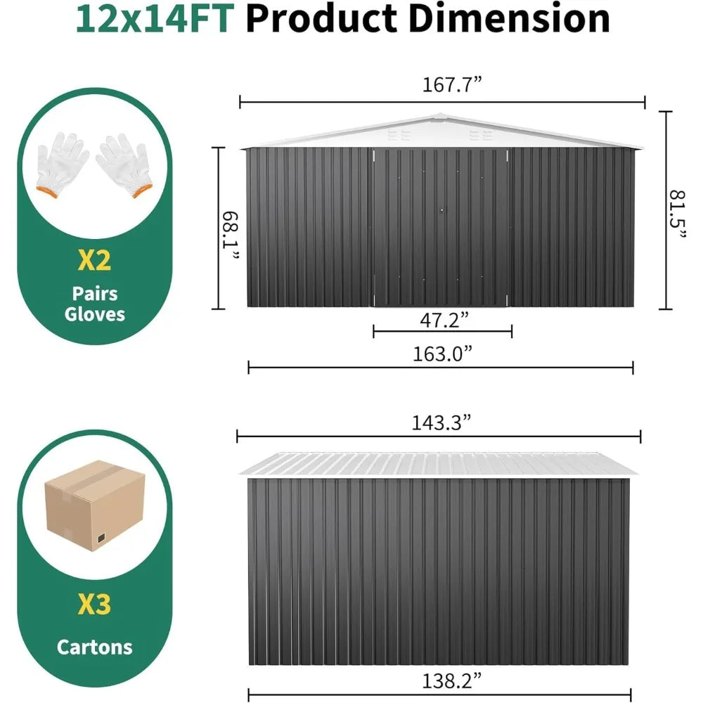 - Generous 12' x 14' footprint provides ample room for bulkier items and organized shelving.