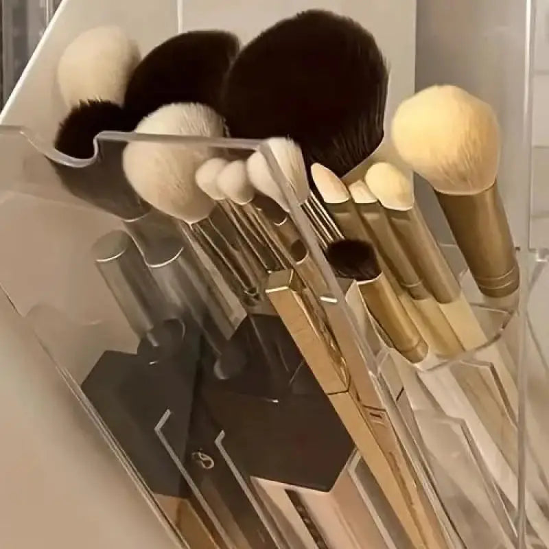 1. **Adjustable Acrylic Brush Organizer**: This transparent vanity holder is designed to accommodate various sizes of makeup brushes and beauty tools, offering a customizable storage solution that keeps your vanity clutter-free and organized.