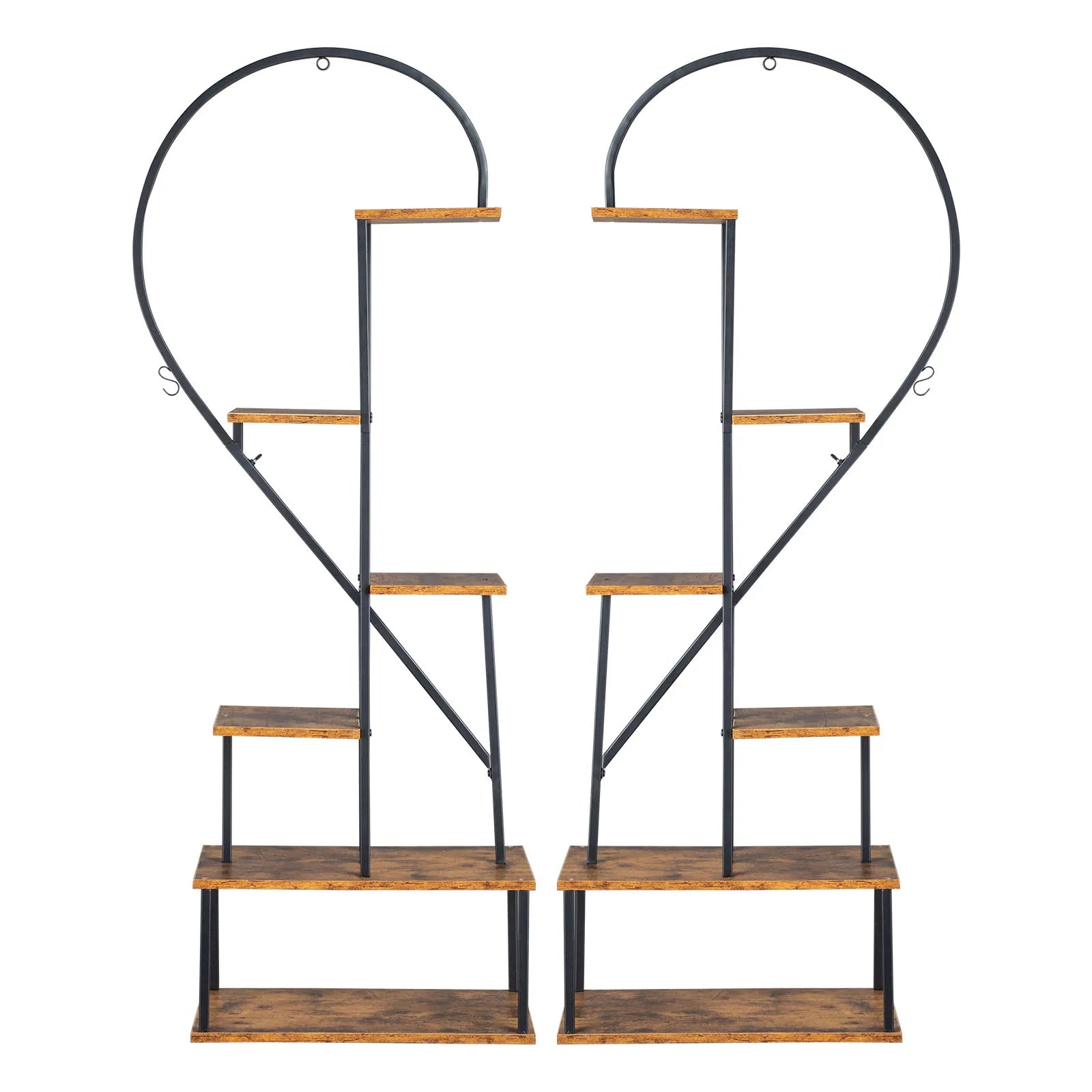 Artisasset 2pcs 6 Layers Half Heart Iron Wood Suitable For Garden Balcony Patio Lawn Home Decoration Plant Stand Flower Pot Stan