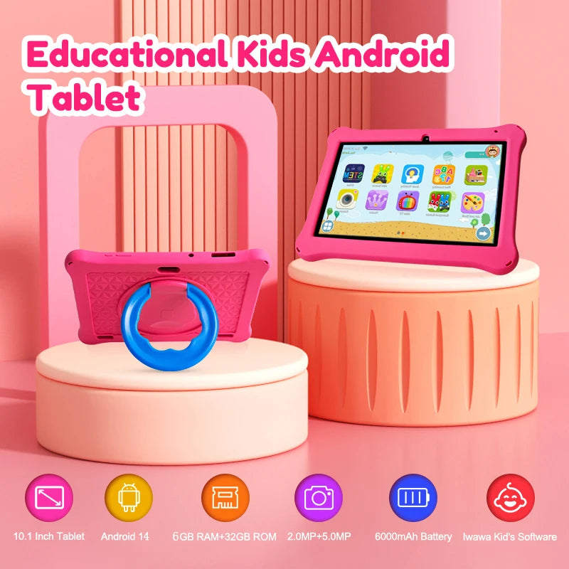 ATMPC 10.1 Inch Kids Tablet Android 14, 6GB RAM 32GB ROM, Eye Protection Screen, WiFi 6, iWawa Parental Control Tablet PC