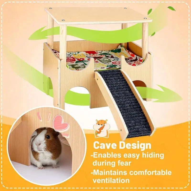 2.Enhancing Hamster Habitat: Upgrade your hamster's habitat with our interactive double-layer wooden house design, providing a fun and engaging space to play, sleep, and explore with ease using the ladder stairs