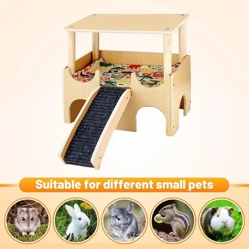 1.Widely Applicable: Transform your small pet's world with this versatile Wooden Hamster House, perfect for enhancing their environment indoors and offering a cozy shelter outdoors for various small animals