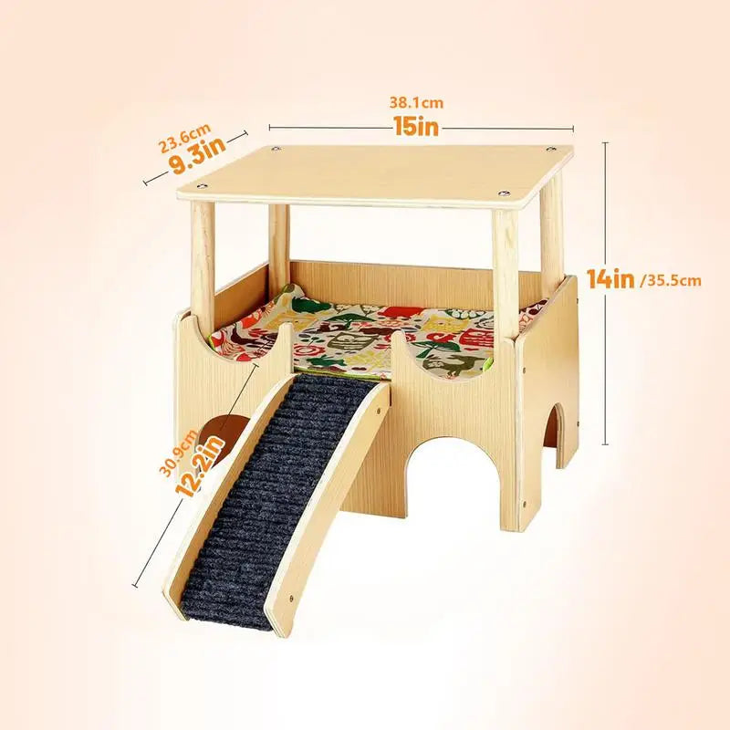 Chinchilla House Double-Layer Wood Hamster House Playground Small Animal Toys Shelter With Ladder Chinchilla Cage Accessories