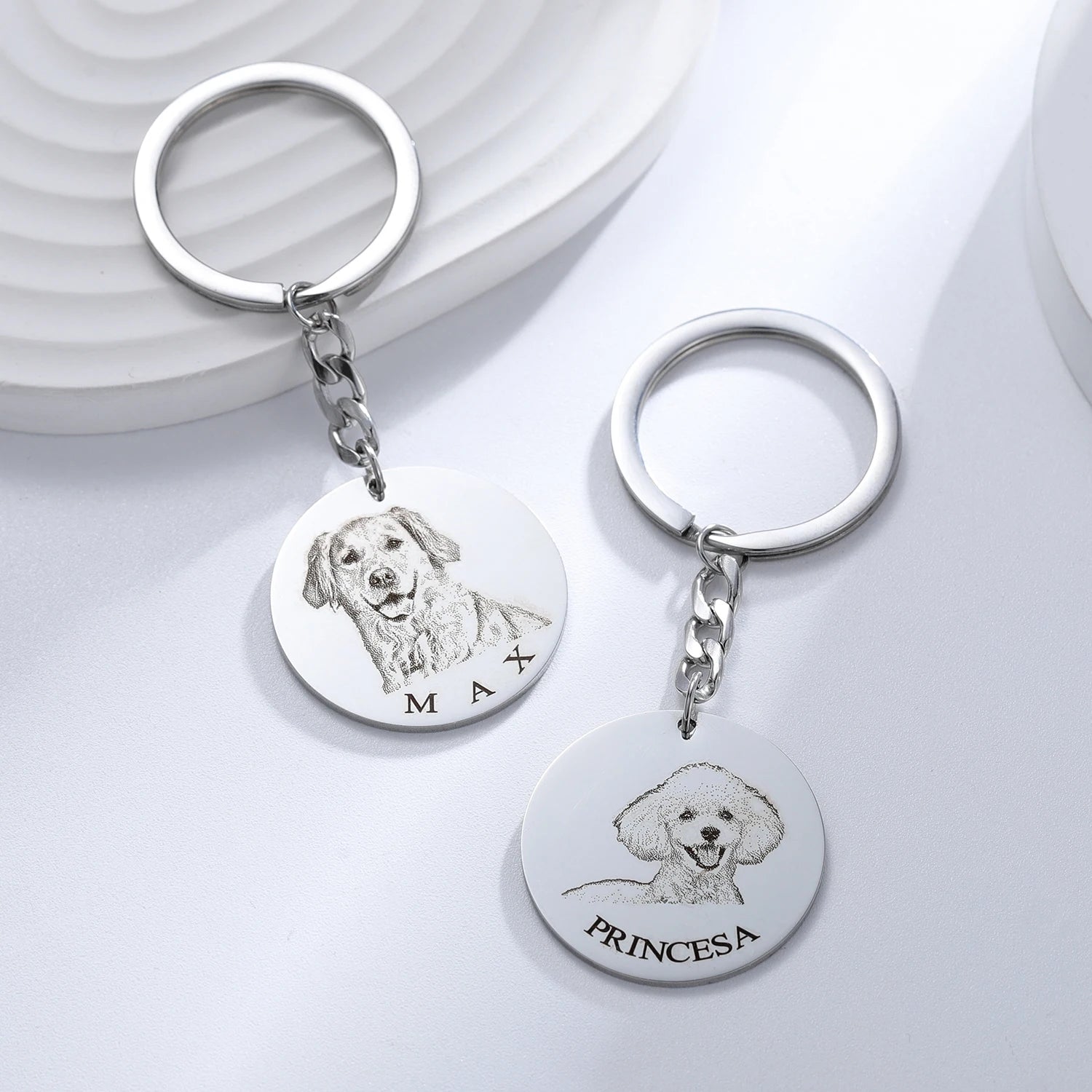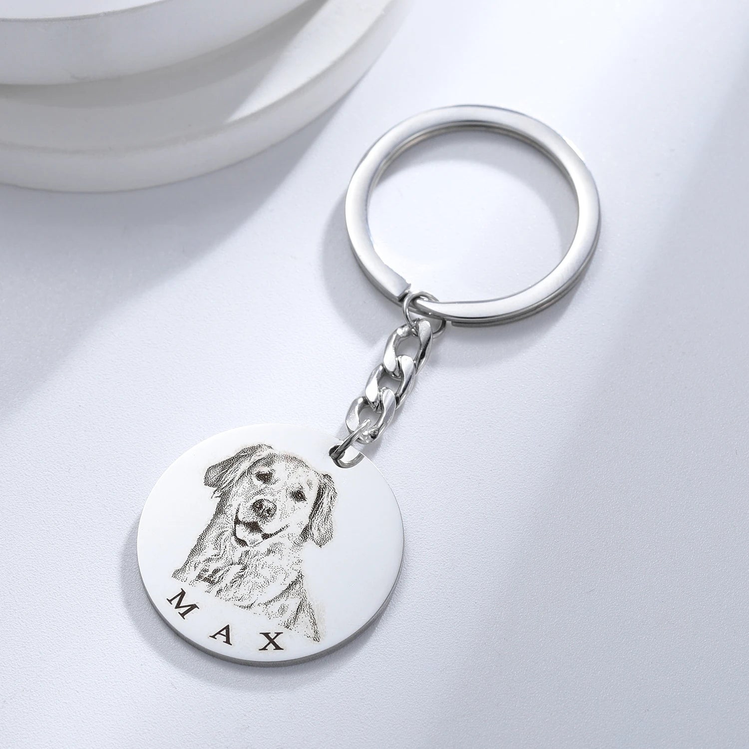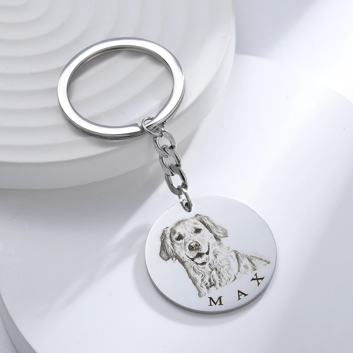 Custom Pet Portrait Keychain Personalized Dog Memorial Engraved Necklace Stainless Steel Pet Memorial Jewelry Gift for Pet Lover