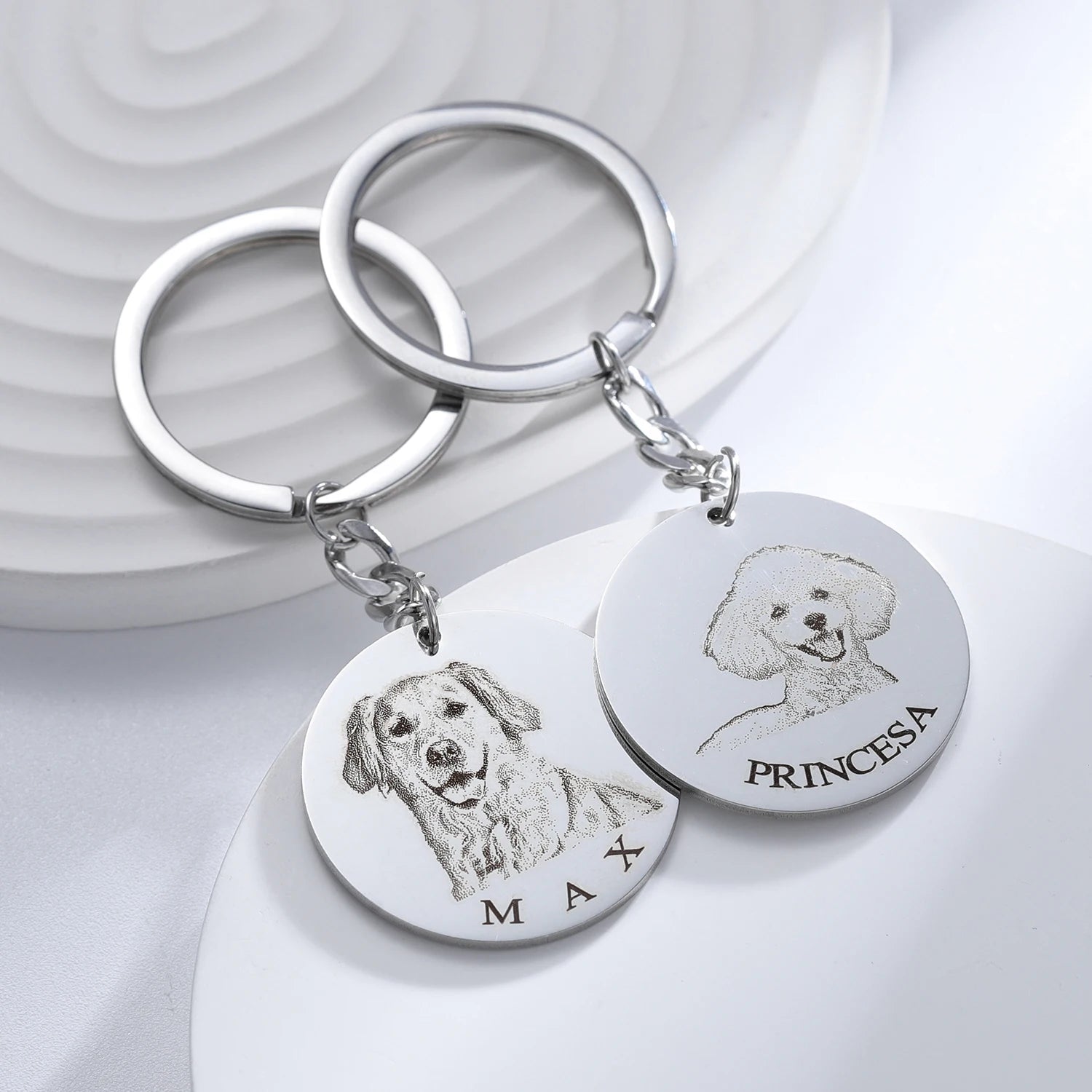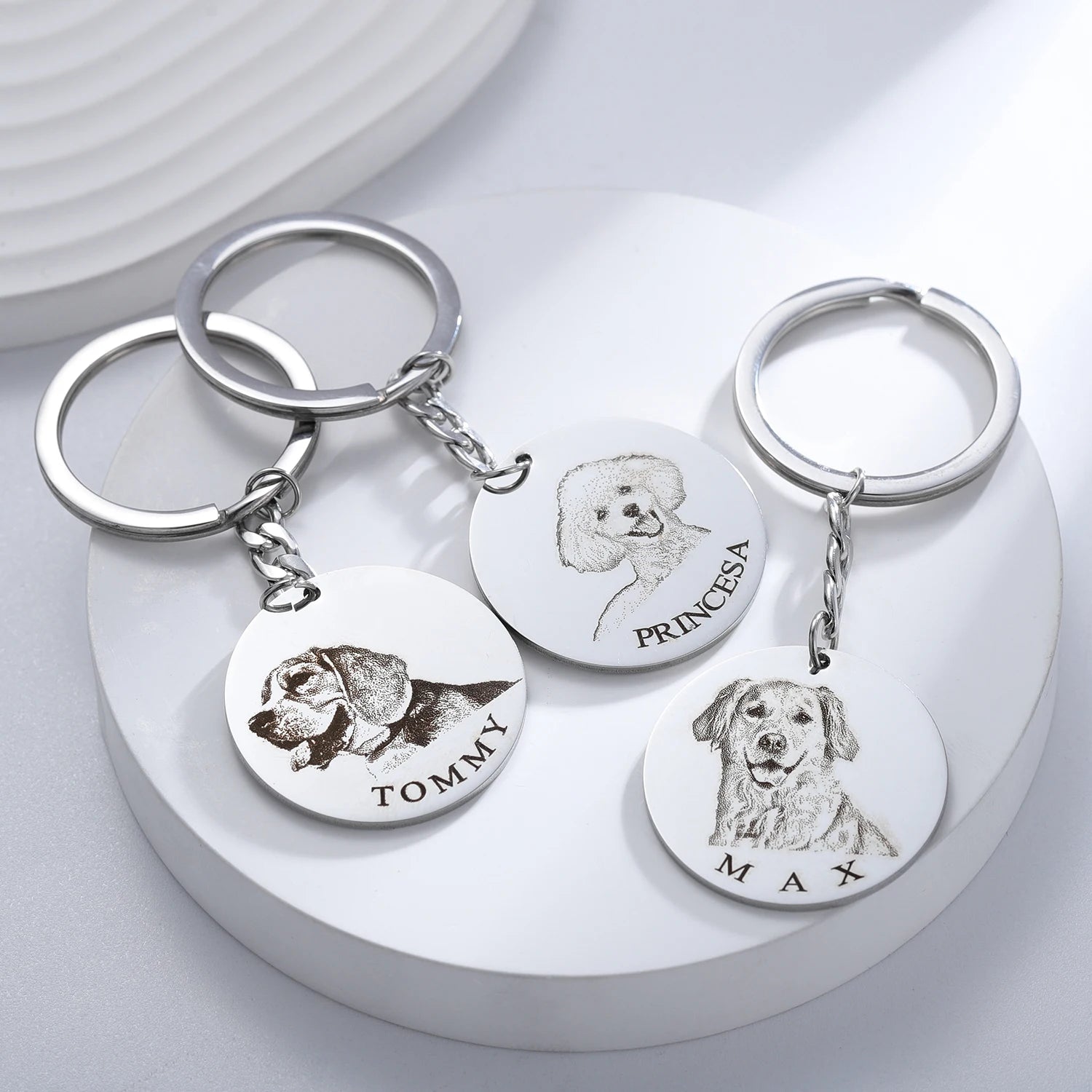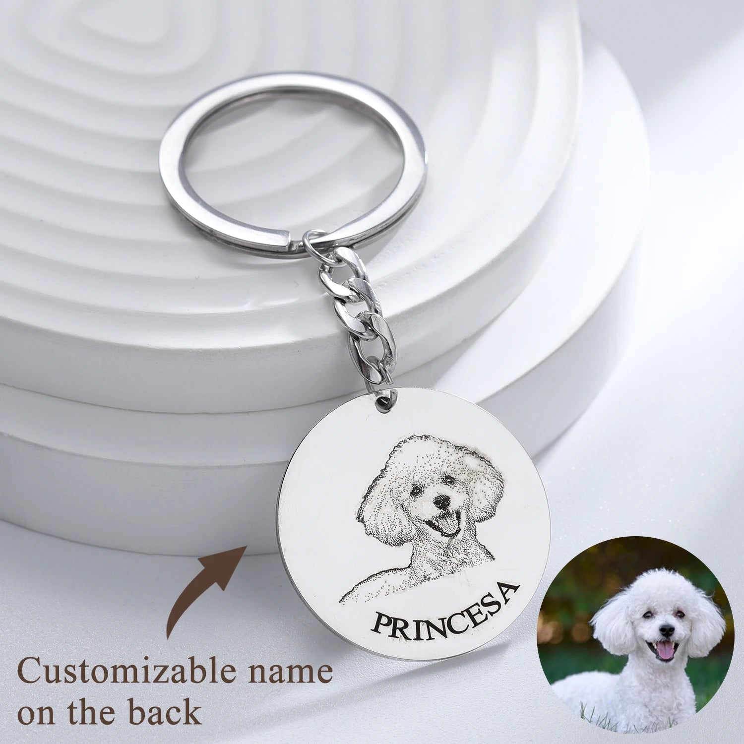 Custom Pet Portrait Keychain Personalized Dog Memorial Engraved Necklace Stainless Steel Pet Memorial Jewelry Gift for Pet Lover