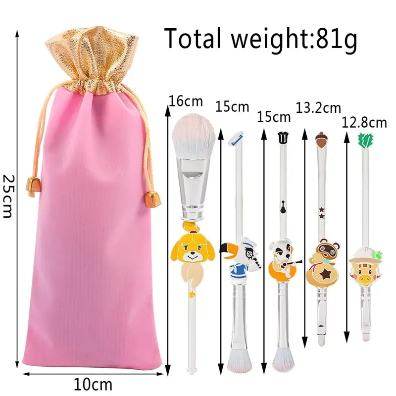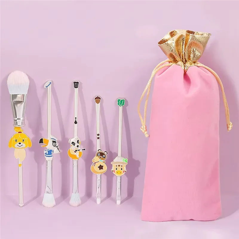 Cute Cartoon Animal Crossing Brush Set, Foundation Eye Makeup Brush, Eyeliner Lip Brush, Women's Face Cosmetic Tools, Lover's Gi