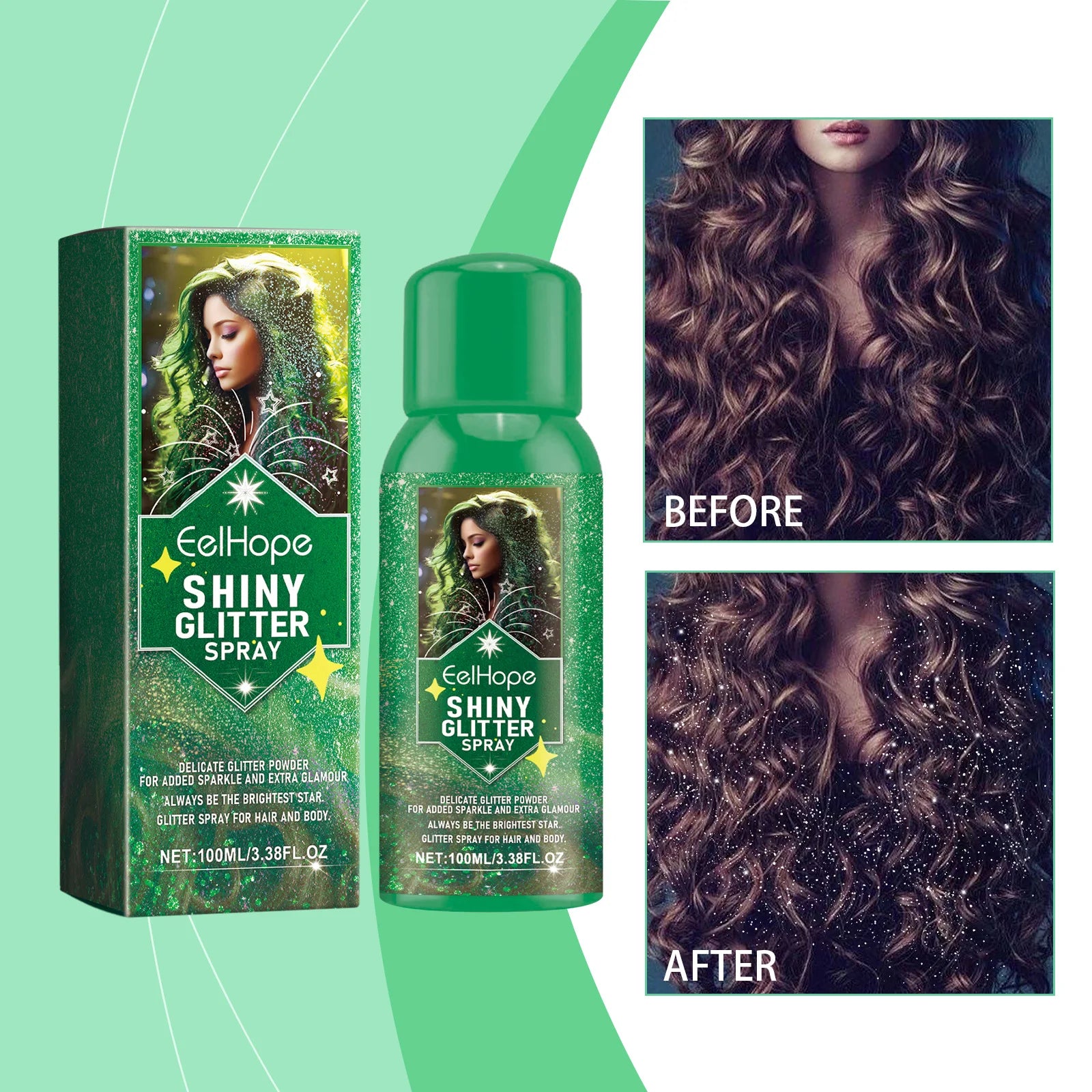 EELHOE 1pcs Highlighter Powder Spray Long Lasting Shiny Face Contour Hair Body Clothes Glitter Makeup for Dating Nightclub Party