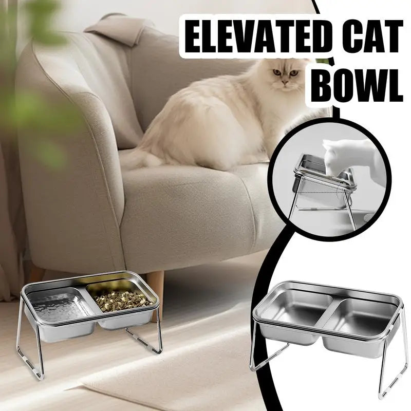 Elevated Cat Dog Bowl Stainless Steel Raised Cat Food Water Bowl Set With Anti Slip Stand For Indoor Cats Pets Feeding Supplies