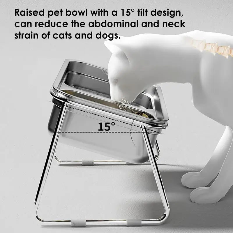 3.Durable Stainless Steel: Our cat bowl promotes healthy feeding posture with a raised stand and stainless steel bowl. The sturdy design ensures it won't deform, even during rough play