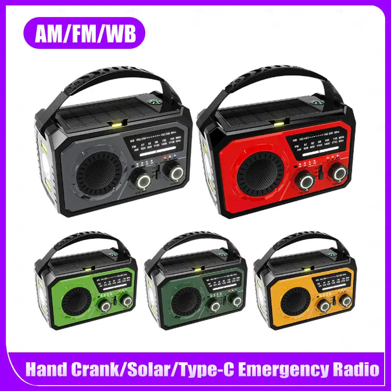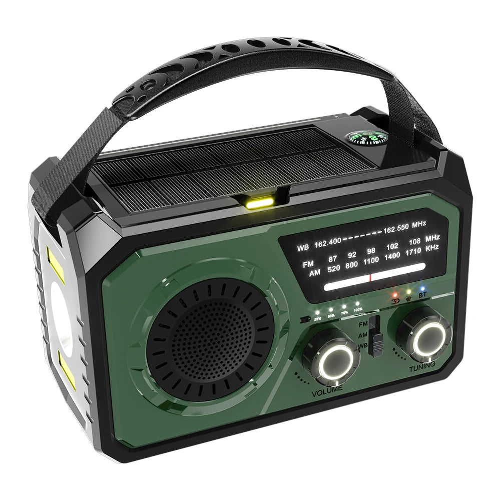 Emergency Weather Radio Bluetooth 5.3 Speaker Hand Crank/Solar/Type-C AM/FM/WB NOAA LED Flashlight 16000mAh Reading Lamp