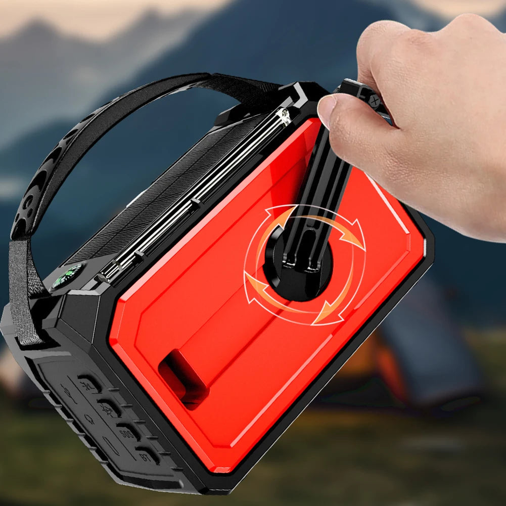 4. Multifunctional Features: This Multifunctional Radio offers multiple charging options (hand crank, solar, USB3A), a Bluetooth-Compatible speaker, SOS alarm, compass, and power bank capabilities. It includes an emergency flashlight/LED light to illuminate the night or assist in reading.