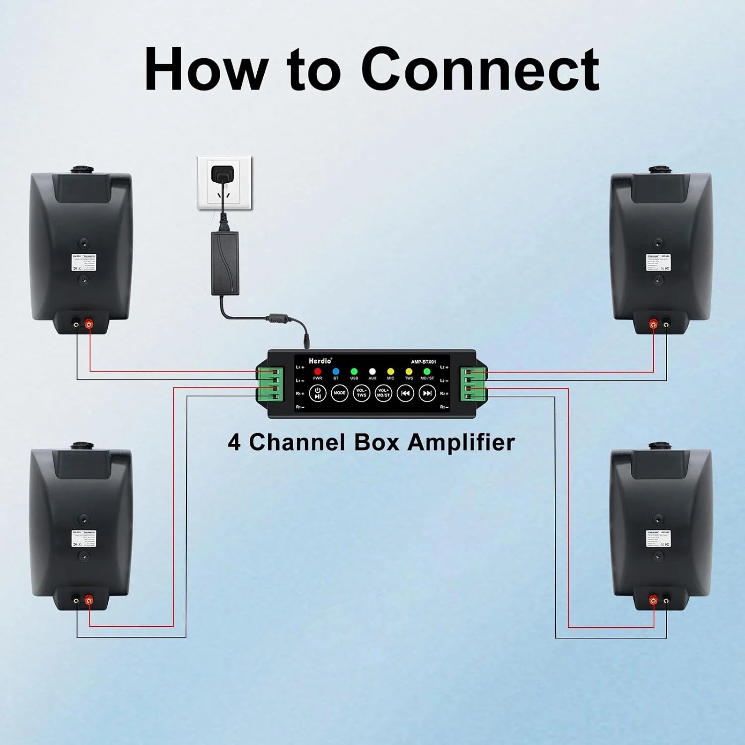 Powerful, weather-ready sound meets effortless outdoor installation with the Herdio 4 Pack 6.5 Inch 800W Outdoor Waterproof Speaker System. This complete wired setup pairs four rugged 6.5" passive speakers with a dedicated four-channel amplifier to deliver immersive stereo sound across patios, poolsides, gardens, decks, and indoor spaces.