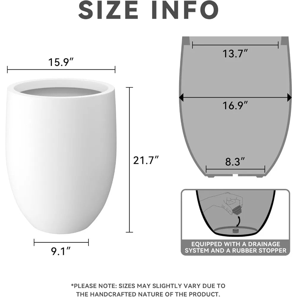 Kante 21.7" H Snow White Concrete Tall Planter, Large Outdoor Indoor Decorative Pot with Drainage Hole and Rubber Plug, Modern R