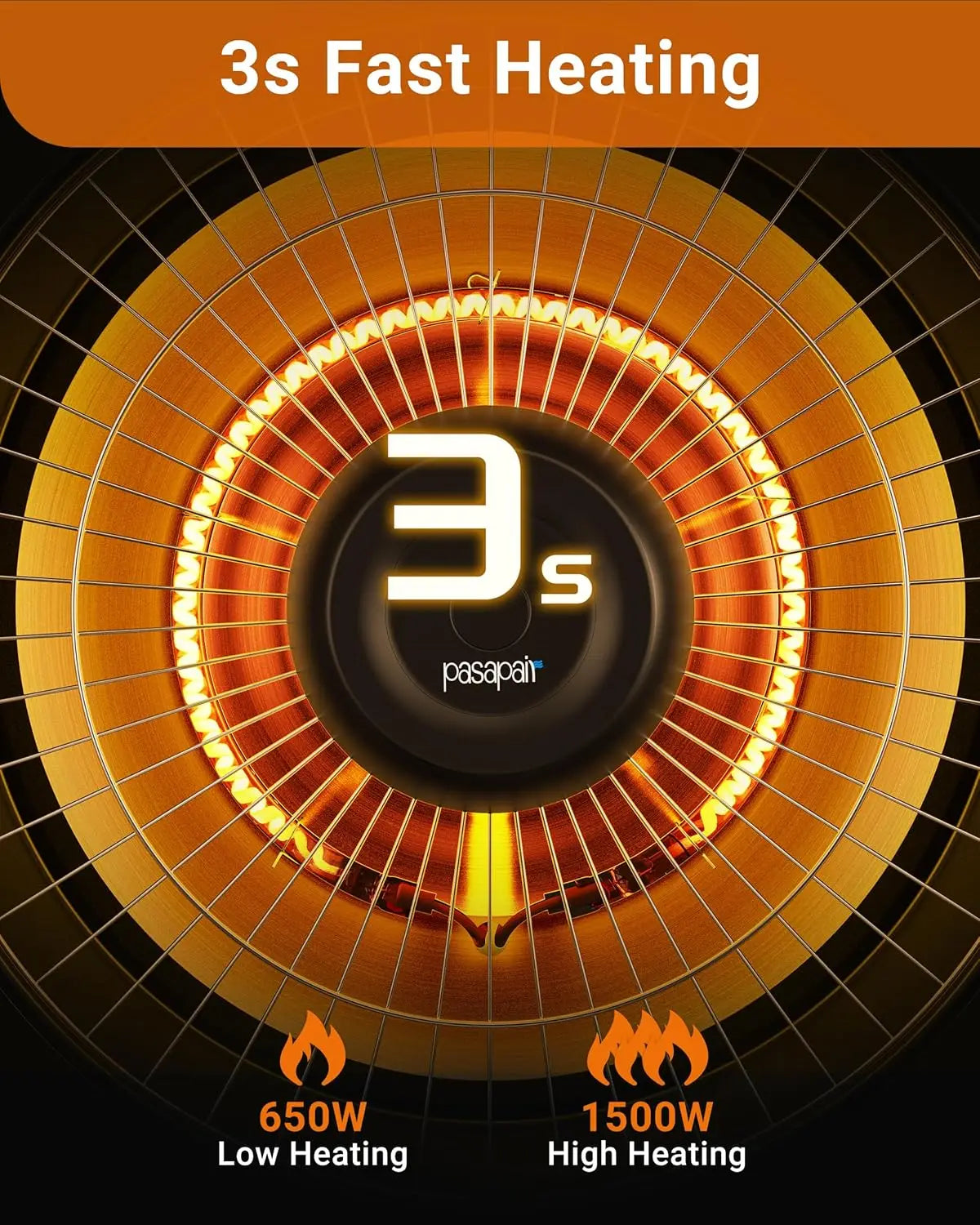 Experience warmth in seconds thanks to 3S fast heating and two adjustable levels: 650W and 1500W. The infrared heating warms people and objects directly for efficient, comfortable heat without drying the air, so you can enjoy your outdoor space longer.