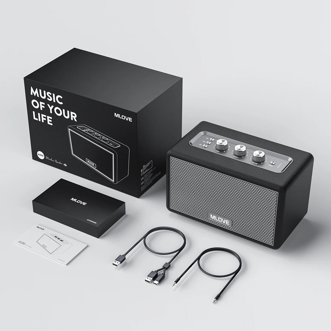 Meet the MLOVE A200, a portable Bluetooth speaker that fuses elegant retro styling with powerhouse performance for home, outdoors, and everywhere in between. With 45W of high-power output and a robust waterproof design, this compact speaker delivers immersive sound and all-day energy.