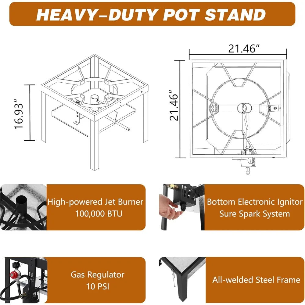 - High-performance 100,000 BTU propane burner for fast, consistent boils