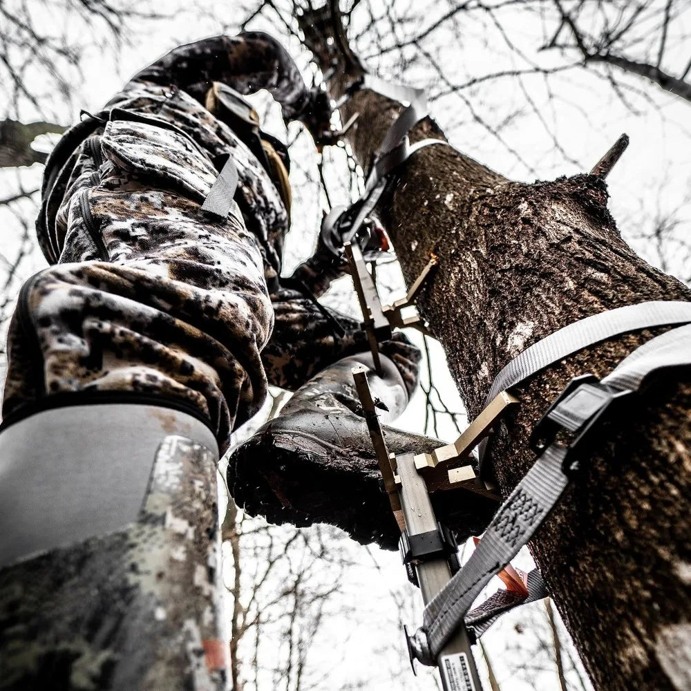 With a 5-inch stand-off and solid V-bracket bites, the X2 steps grip the tree securely, giving you a stable platform even on uneven trunks. The double-step design provides two secure steps per stick, so you can ascend quickly and quietly.