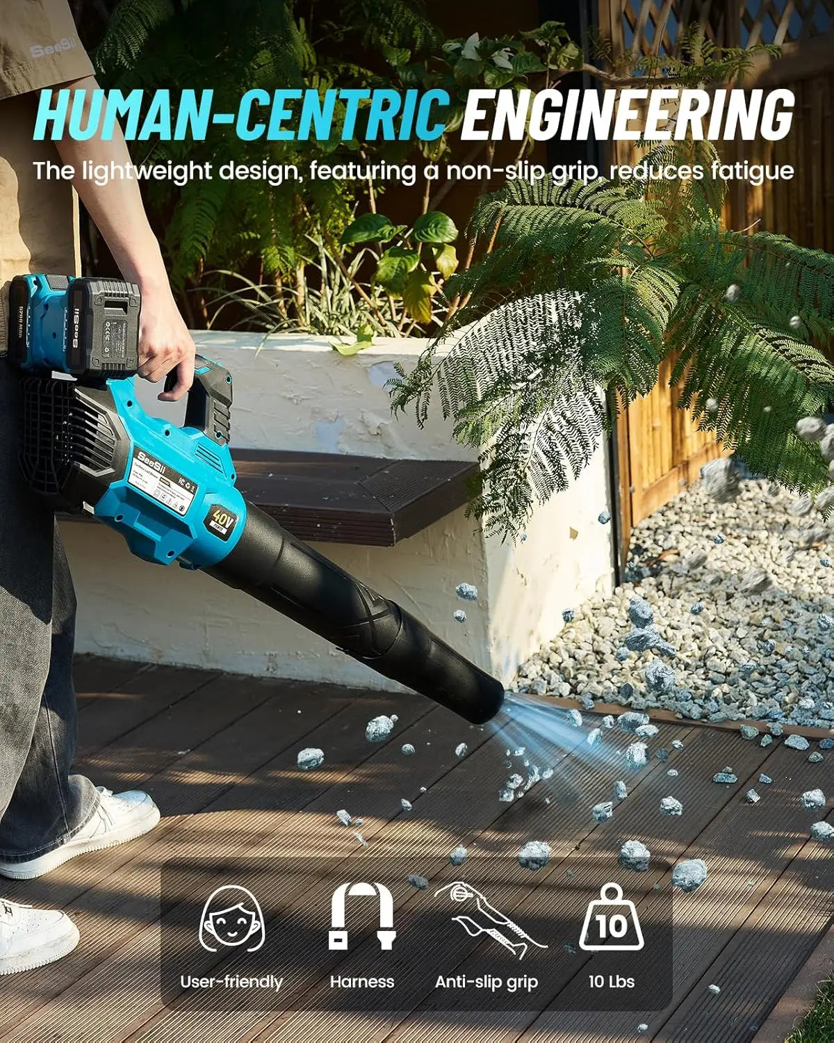 Meet the SeeSii 40V Leaf Blower — a cordless powerhouse designed for fast, efficient yard cleanup. Packed with a brushless motor and 2x5200 mAh batteries, it delivers up to 680 CFM of airflow and speeds up to 210 MPH, making quick work of leaves, debris, and light outdoor tasks.