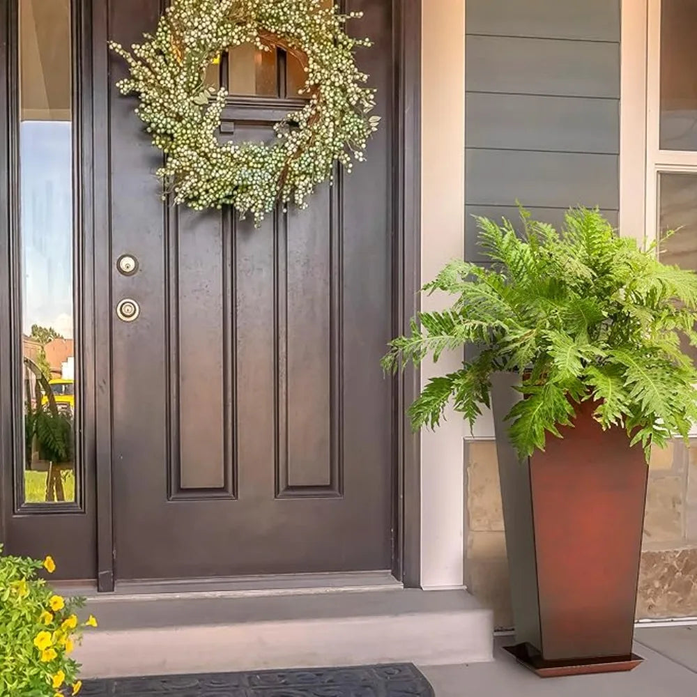 Discover the Worth Garden 28 Inch Large Red Glazed Metal Planter Set of 2, a bold statement for any space. These tall, square tapered planters are built from premium metal to deliver enduring strength that stands up to sun, wind, and daily use—indoors or outdoors.